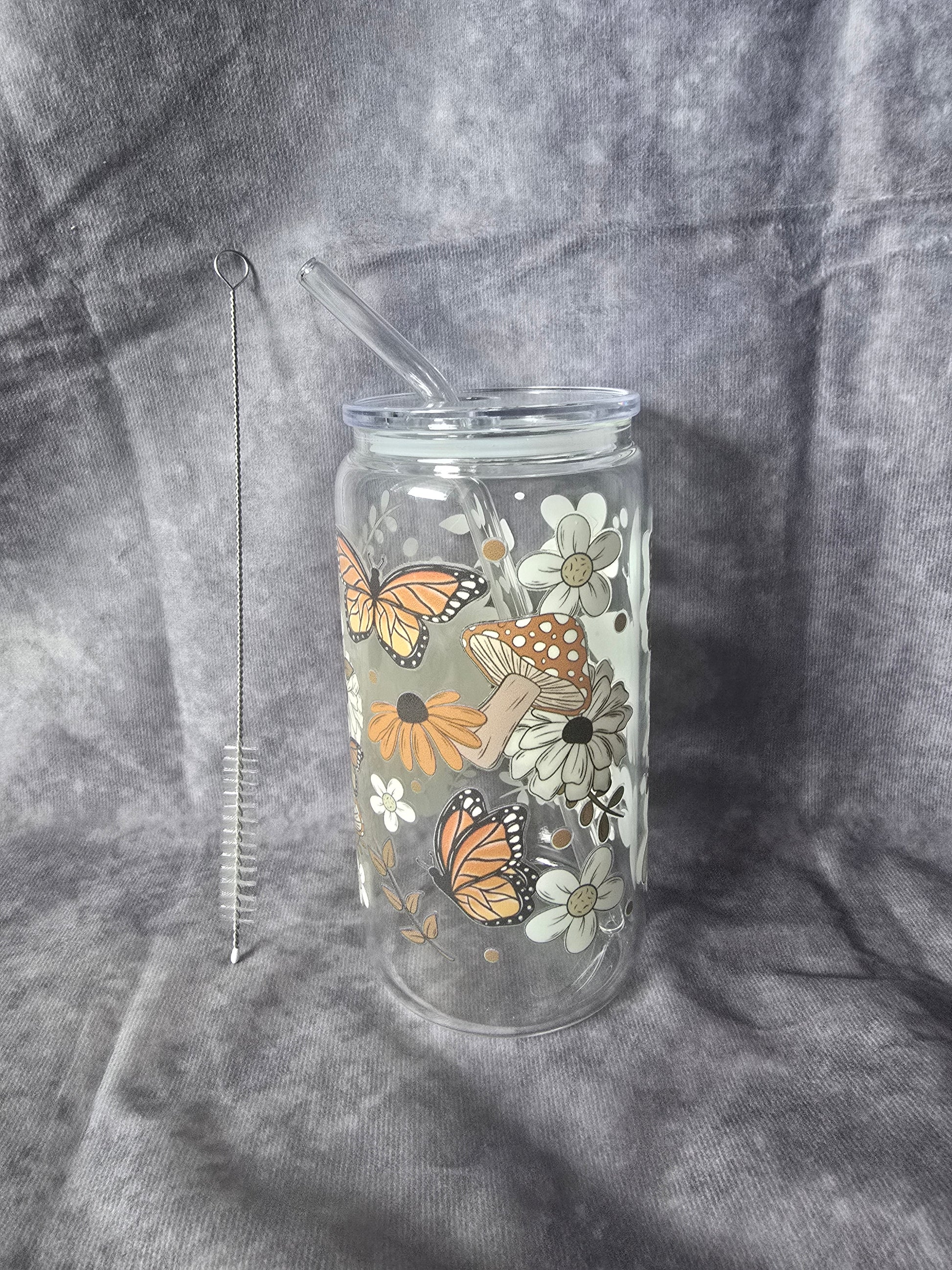 Reusable Glass Cup with Straw and Cleaning Brush
