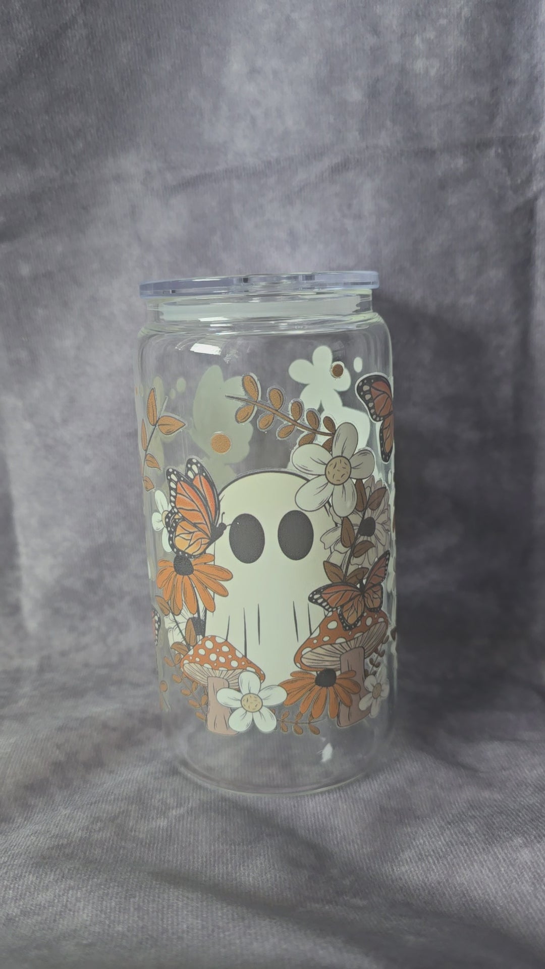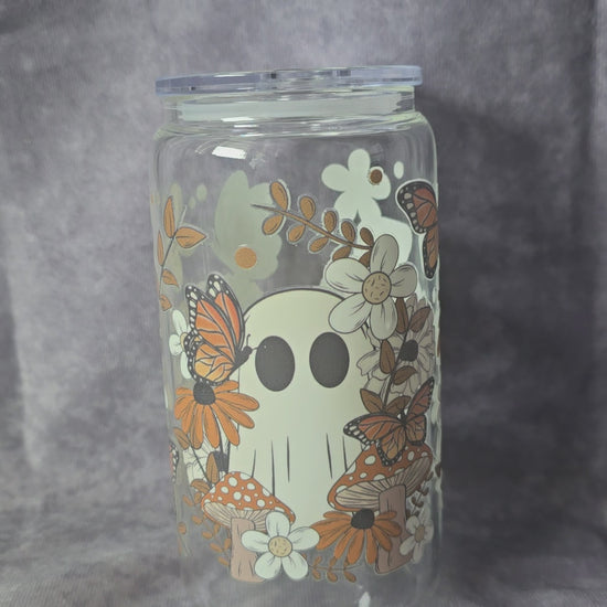 Sip in spooky style with this adorable Fall Ghost-Themed Glass Cup! Featuring cute little ghosts, autumn leaves, and cozy fall vibes, this cup is perfect for iced coffee, tea, or your favorite seasonal drinks. Whether you're a Halloween lover or just here for the boos, this charming glass tumbler is a must-have.